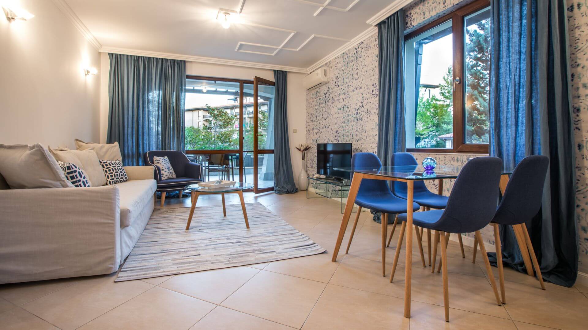 Цената е 180 лв на вечер за апартамент за семейство с две деца през юли и август.