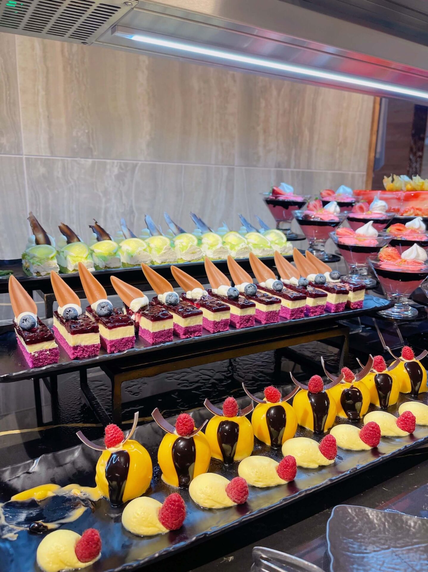 На въпроса за храната все още се чудя как да отговоря, защото е вкусна, разнообразна, постоянно има къде и какво да ядеш и пиеш, но на думи някак не може да се опише. Снимките са едно добро начало и все пак, когато си в основния ресторант, опасността от това да искаш да опиташ всичко е голяма, както и самото доближаване до сладкишите води риск до повишаване на настроението и апетита само от гледката 🙂