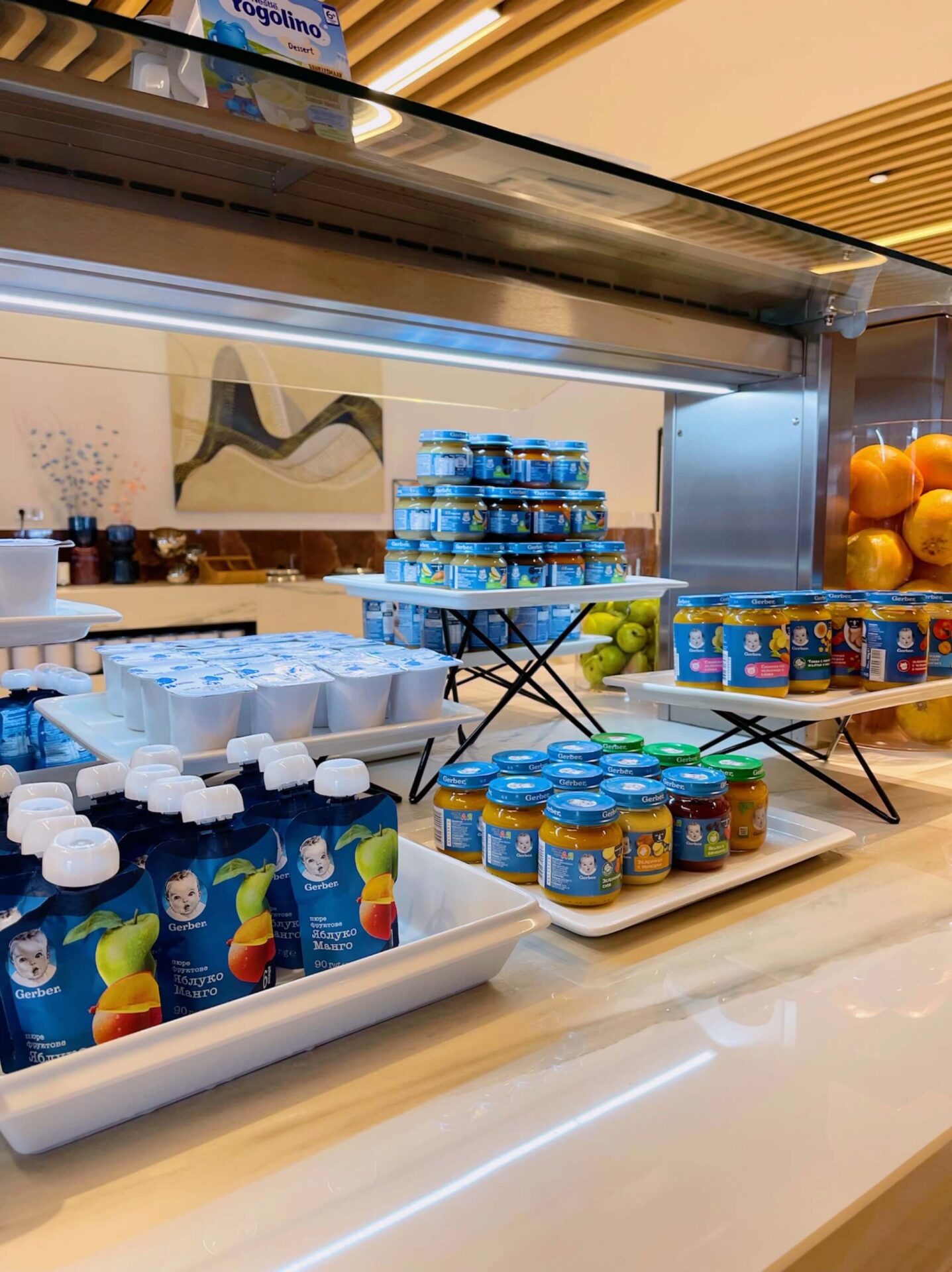 За родителите на малки деца и бебета хотелът съвсем улеснява престоя, защото винаги има налично адаптирано мляко + къде да бъде затоплена водата за него, както и пюрета и нектари за по-големите.